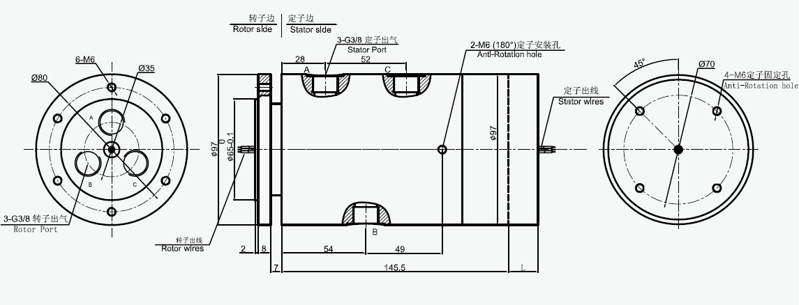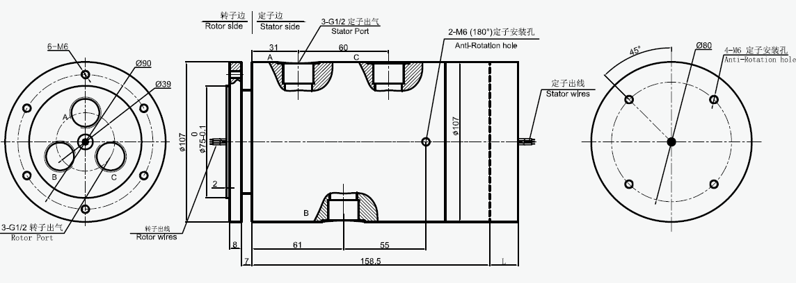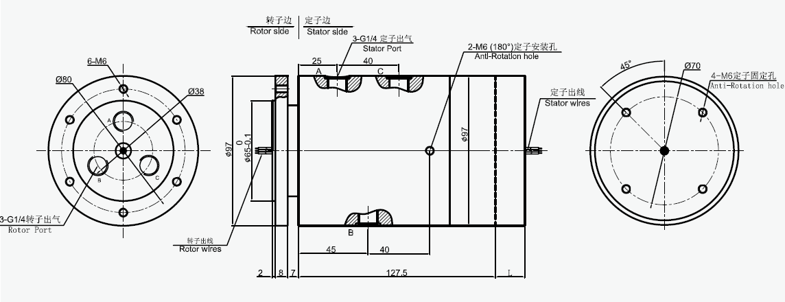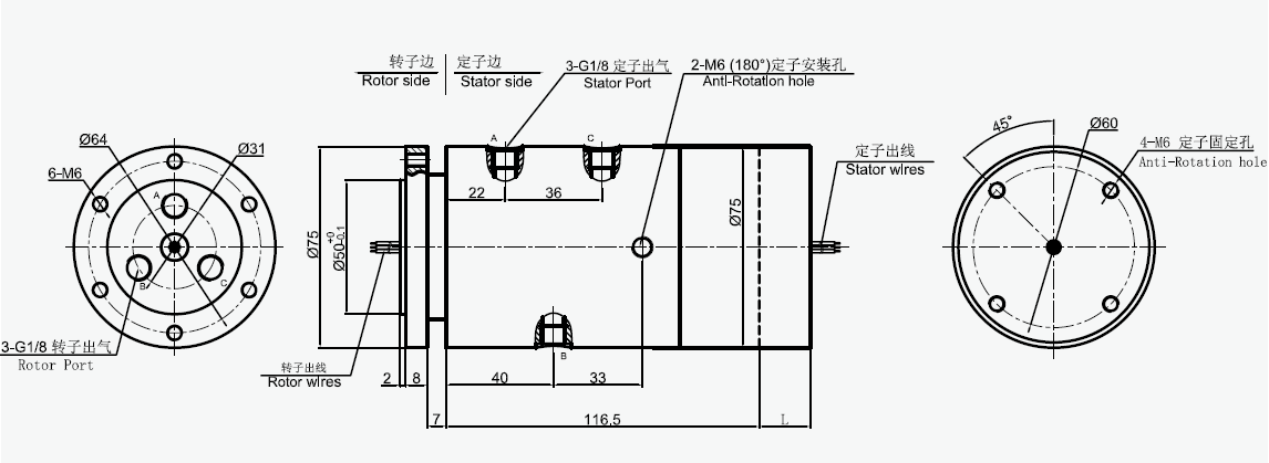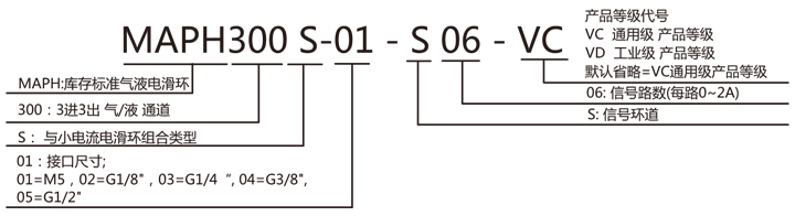 MAPH300S-XX 氣液電一體滑環(huán)選型表 1)XX=01,接口尺寸=M5, 氣管規(guī)格3~6mm 2)XX=02,接口尺寸=G1/8,氣管規(guī)格3~10mm 3)XX=03,接口尺寸=G1/4,氣管規(guī)格3~12mm 4)XX=04,接口尺寸=G3/8,氣管規(guī)格3~16mm 5)XX=05,接口尺寸=G1/2,氣管規(guī)格3~20mm |