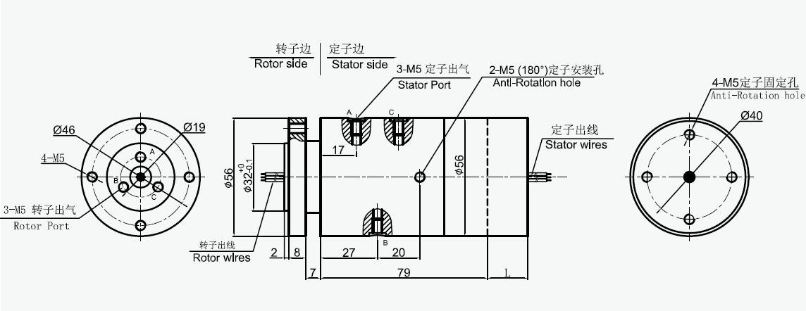 型號(hào) | 氣(液)通 | 10A | 信號(hào)或5A | 長(zhǎng)度L(mm) |